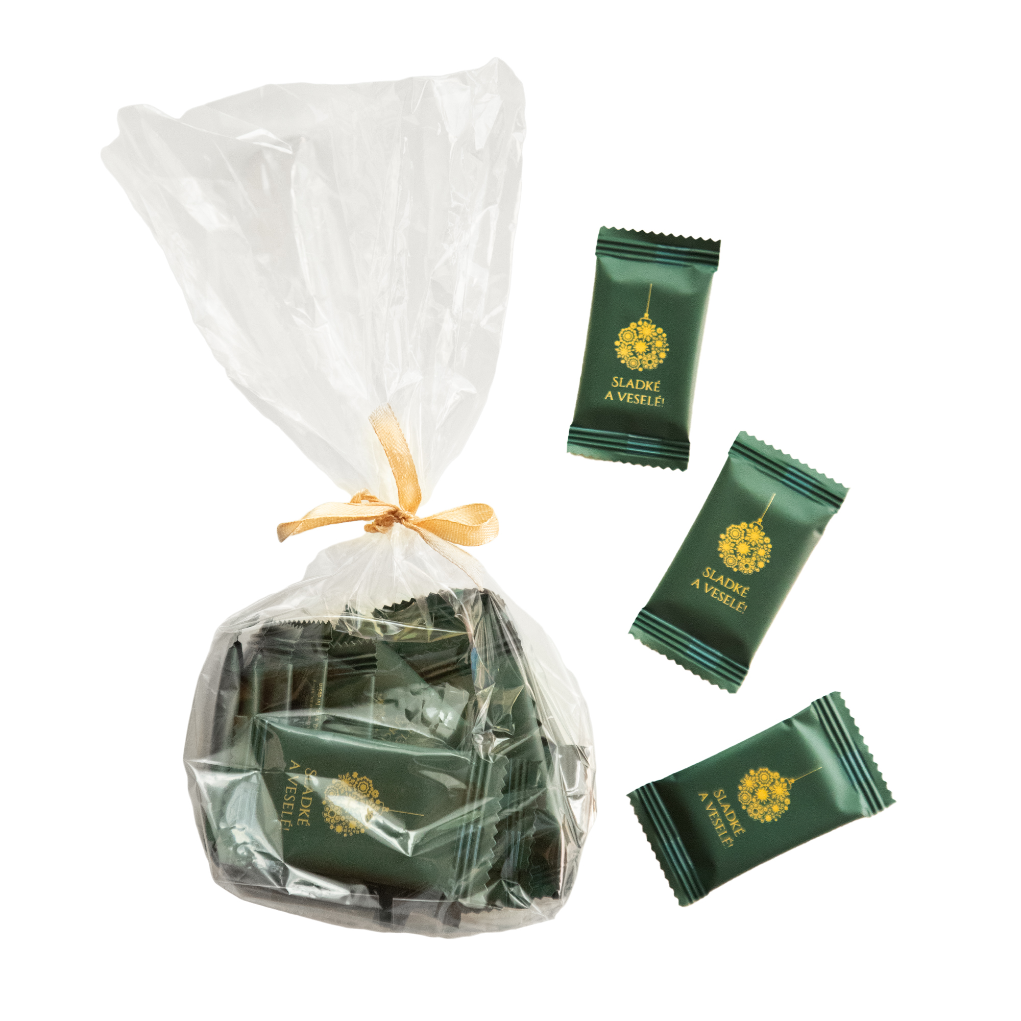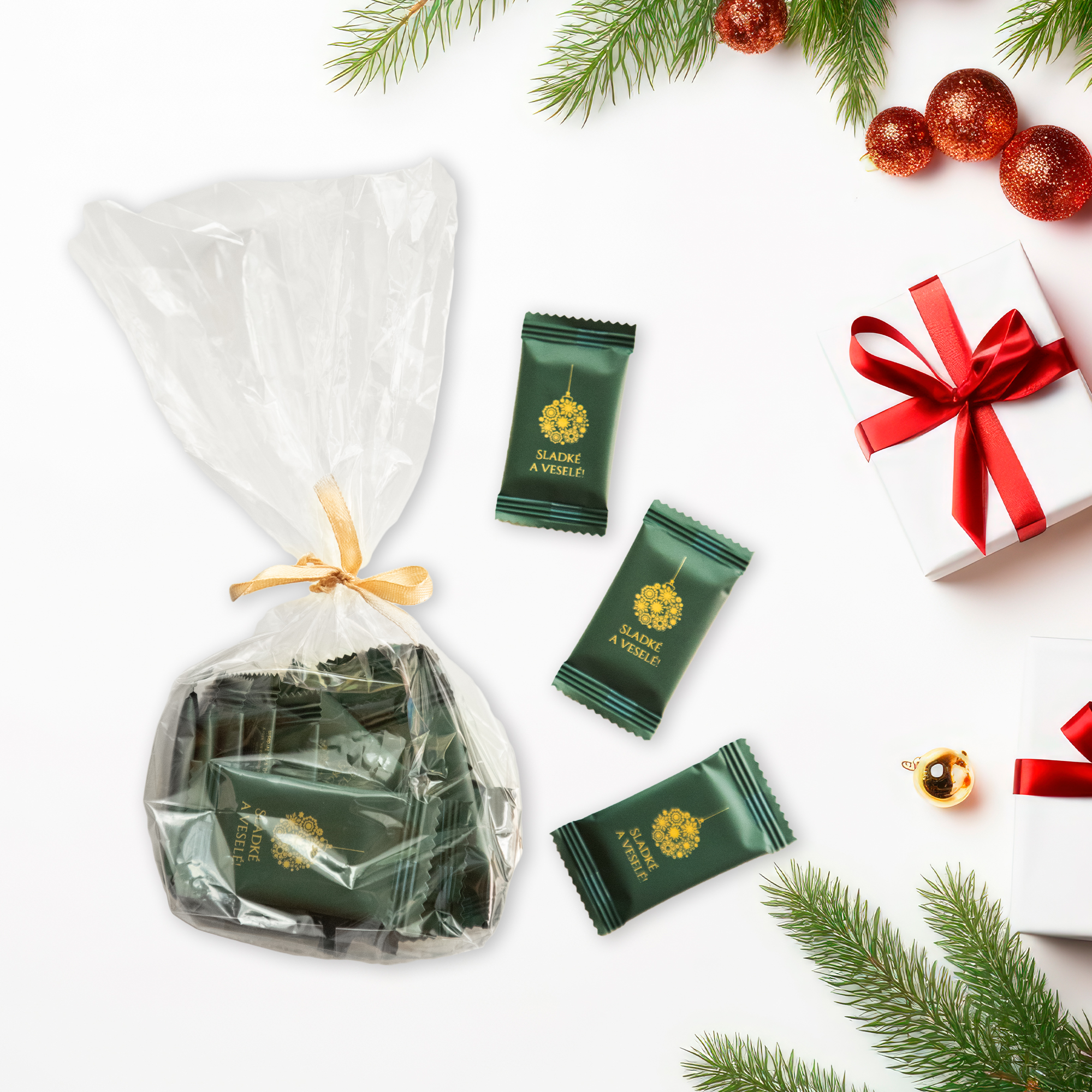 Každá čokoládka je navyše zabalená v elegantnom vianočnom obale s nápisom „Sladké a veselé“, ktorý dodáva darčeku ešte viac sviatočného šarmu.
